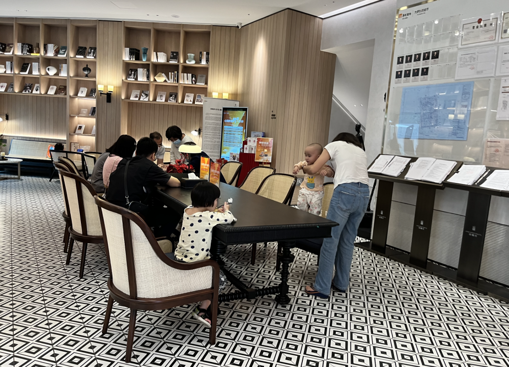 4月29日,在售楼处洽谈的购房者,时代周报记者摄