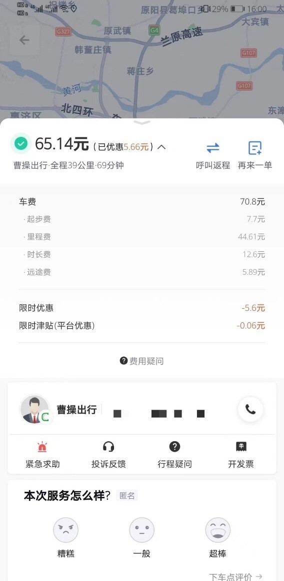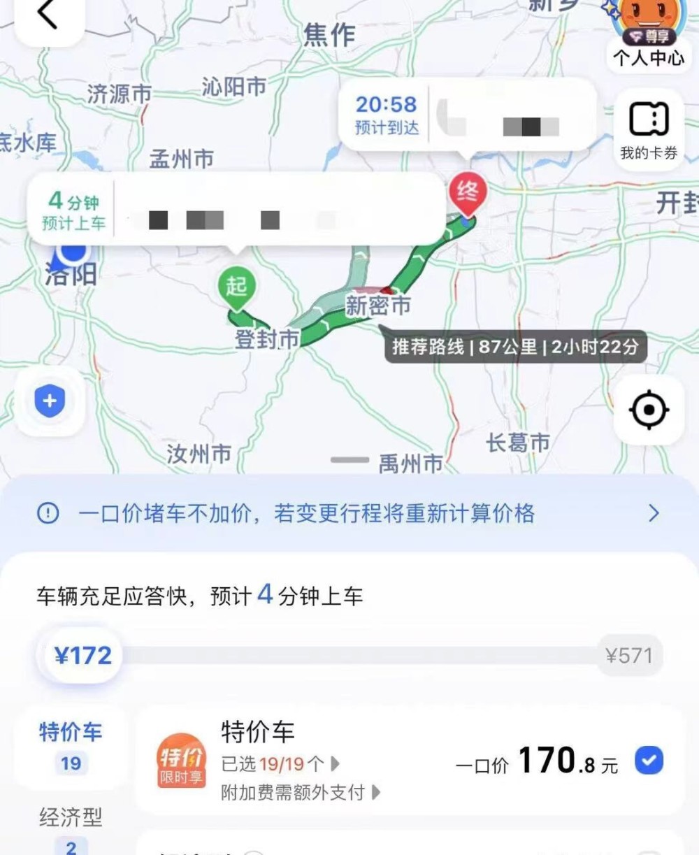 比如4月29日她从登封打车到郑州,行程90公里左右。网约车司机称,政府不允许跨城市接单,且自己返程时很难再接单,所以要额外收取50元“空驶费”。几经协商,曾女士取消平台订单,转向网约车司机转账打车费170元和“空驶费”30元。