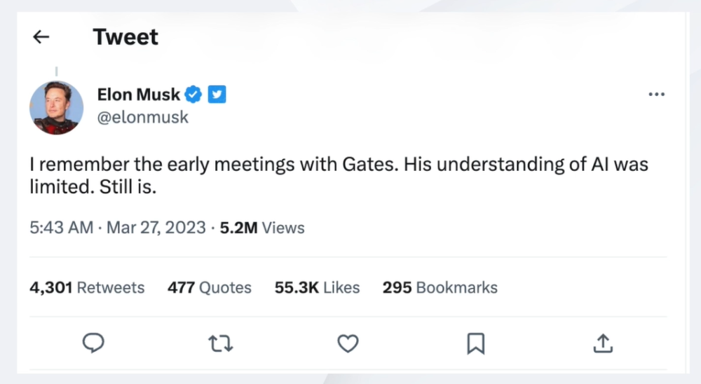 但无论如何,盖茨因为Nadella的坚持而重新让微软走到了最有利的位置,而马斯克这位“前人种树被后人乘了凉”的联合发起人,现在不仅跟OpenAI分道扬镳,还只能在网上和Sam对呛,实在有点不甘心。试想一下:如果当初马斯克没有直接甩手走人,而是履行剩下9亿的承诺呢?结局会不会不一样?