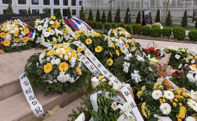 英雄儿女逝去,长歌无尽当哭,泪水,强忍咽下,愤怒,化为力量,我们可以告慰,长眠在地下的烈士们,24年后的今天,一个强大的中国,已成为捍卫世界和平的重要力量。如今,在被炸使馆旧址两座纪念碑前,摆放着数不清的鲜花,诉说着人们对三位烈士的无尽哀思。