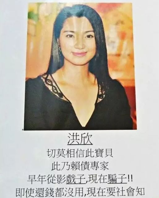 2012年12月,一张印着洪欣头像的追债街招,从澳门贴到香港,从跑马地贴到中环。有澳门赌厅人士爆料,声称洪欣是“赌场中介人”(也就是传说中的叠码仔),欠了某赌厅411万港币,约合人民币354.6万,两年都没有归还。洪欣对此解释说,欠债的人并不是她,而是她做赌场中介的父亲。有媒体曝光过几张借条,上面写着两个人的名字:洪爷,洪欣。