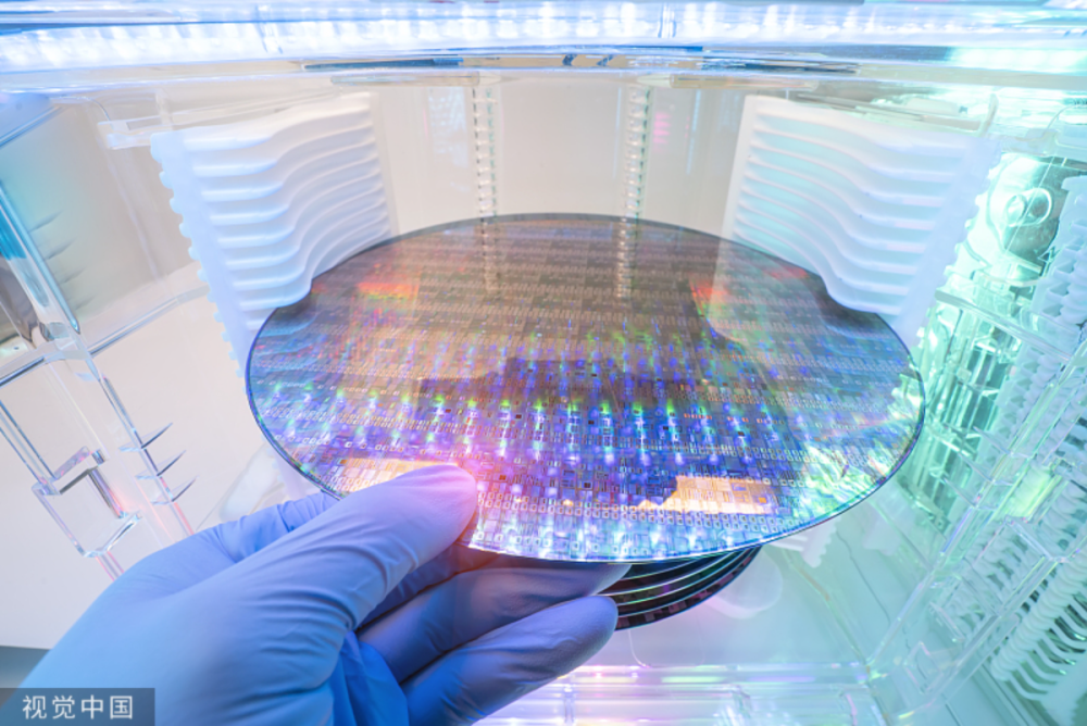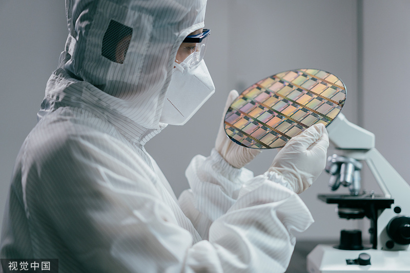 图为芯片工程师在进行晶圆表面检测 来源:视觉中国