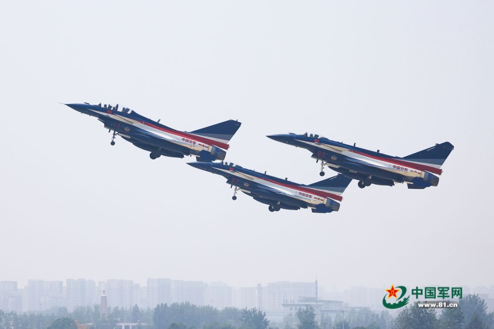 2023年5月15日,空军八一飞行表演队三机编队从华北某军用机场起飞 。
