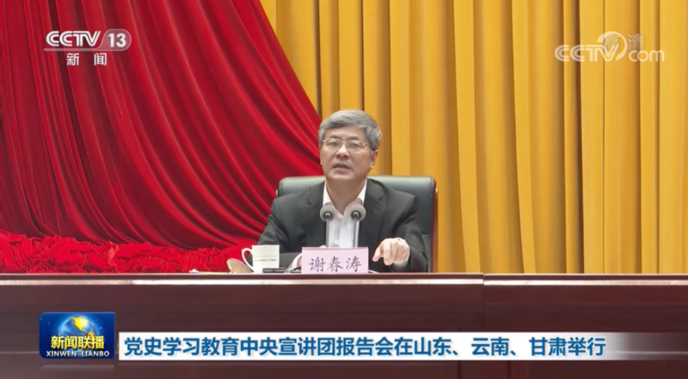 政知君注意到,2021年,谢春涛曾作为党史学习教育中央宣讲团成员到江西、山东宣讲。当年10月,谢春涛还在《党课开讲啦》出镜,讲述“中国共产党为什么能”。