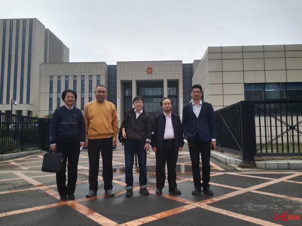 ↑5月17日,丁永恒(左二)和律师(右二)到吉林省高院参加案件问询会