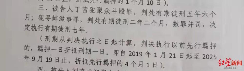 2019年3月25日,吉林省白城市洮南法院一审以聚众斗殴罪、寻衅滋事罪,判处丁茜有期徒刑7年。2019年4月29日吉林省白城市中院二审驳回上诉,维持原判。