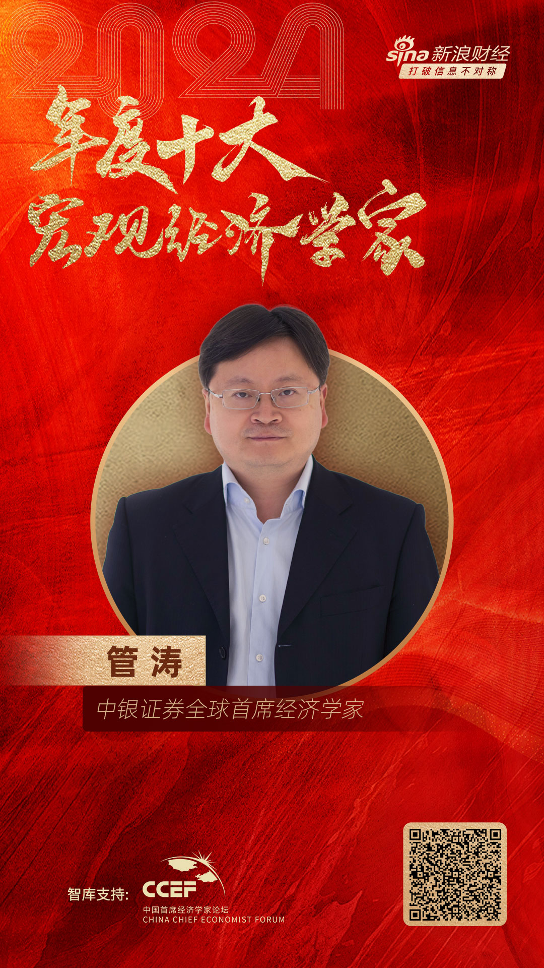 中银证券全球首席经济学家管涛荣膺“2024年度十大宏观经济学家”!