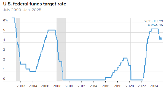 北京时间周四(1月30日)凌晨3:00,美联储宣布将联邦基金利率目标区间维持在4.25%-4.5%的区间,这是美联储自去年9月开启降息周期以来首次暂停降息,符合外界普遍预期。