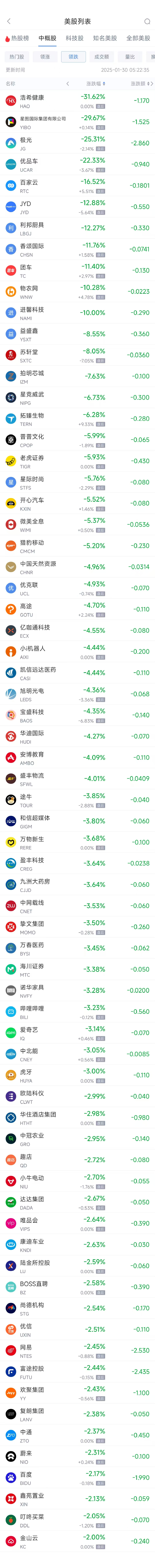 (截图来自新浪财经APP 行情-美股-中概股热门板块)下载新浪财经APP