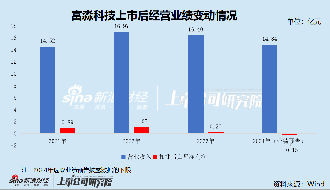 自上市以来,富淼科技的经营业绩呈现“过山车”的走势。