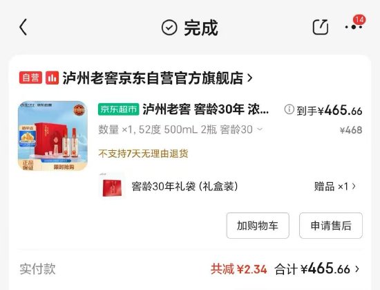 此外,在提及蒋先生的情况时,泸州老窖客服表示,“预计是漏取包裹了,一般礼袋和礼盒是分开两个包裹的。”再问及如果酒碎了是否可以退换时,客服只不断重复“使用下单账户进线咨询”。