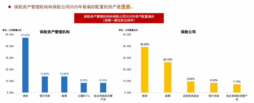 在资产配置偏好上,调查结果显示,债券仍然是我国保险机构2025年首选的投资资产,其次是股票和银行存款。