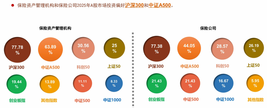 2025年,保险机构看好沪深300和中证A500相关股票,看好电子、银行、计算机、公共事业、家用电器、食品饮料、通信和国防军工等行业,关注新技术、红利资产和高分红高股息等投资领域,认为企业盈利增速以及消费、地产复苏情况是影响2025年A股市场的主要因素。
