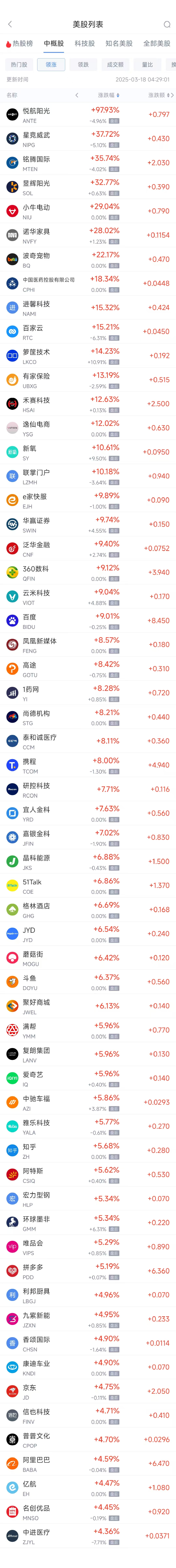 (截图来自新浪财经APP 行情-美股-中概股热门板块)下载新浪财经APP