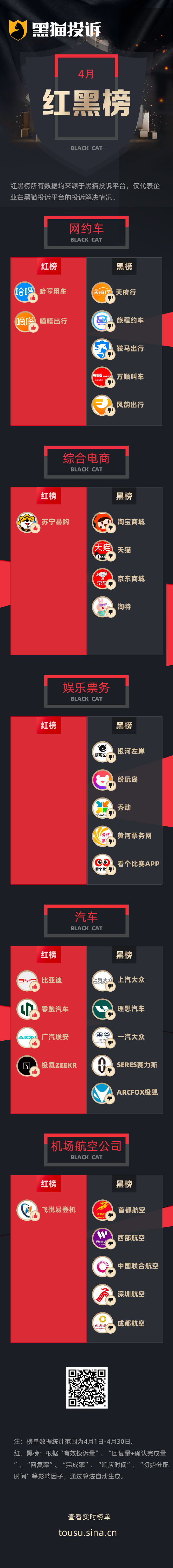 黑猫投诉4月行业红黑榜单
