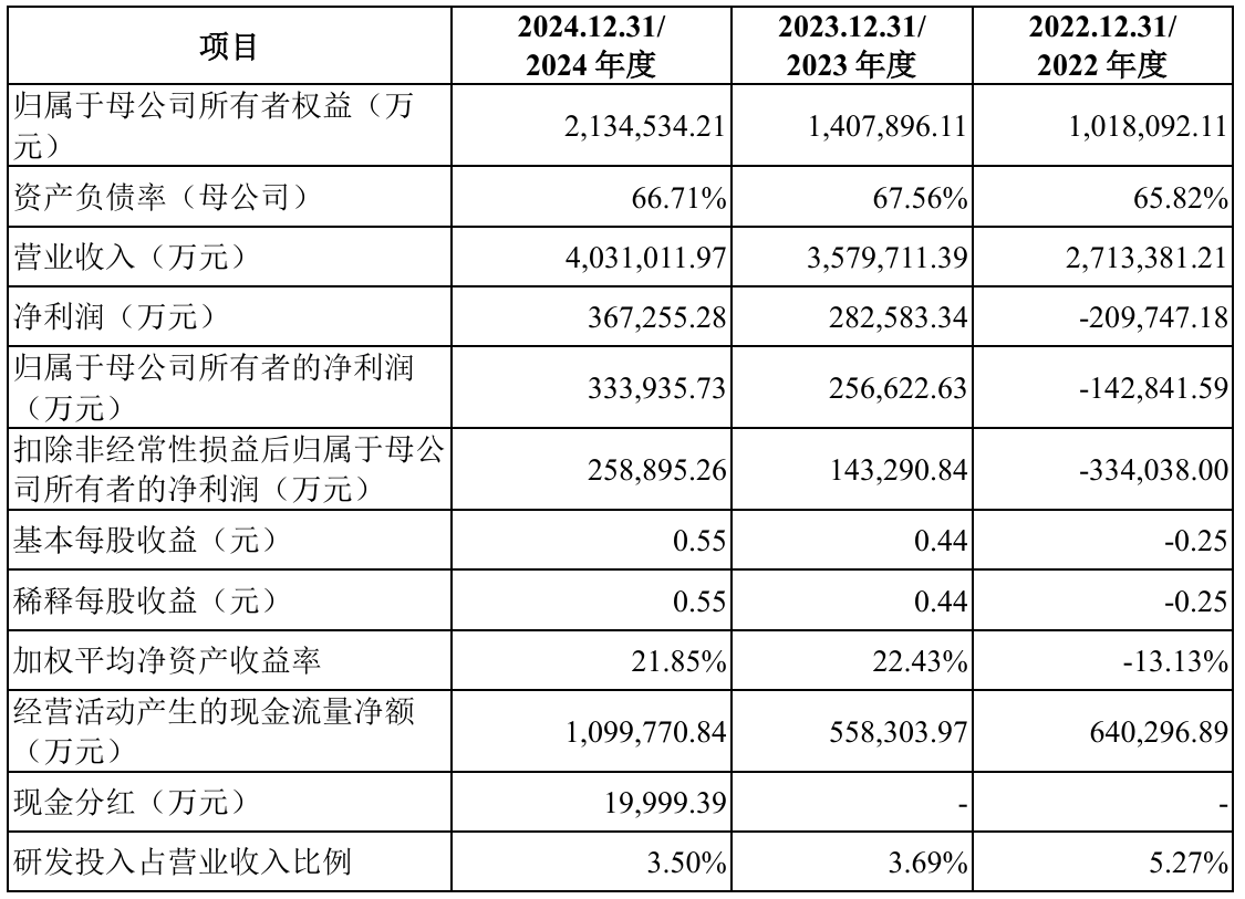2022至2025年第一季度,公司营业收入分别为42.64万元、5302.12万元、7.43亿元和 32,041.53 万元,归属于母公司所有者的净利润分别为-77,696.52 万元、-87,115.82 万元、-140,887.94 万元和-23,251.22 万元此次融资金额39.04亿元,保荐机构为华泰联合证券有限责任公司。