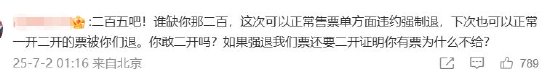 还有网友喊话@猫眼演出 ,“你们的技术问题为什么让消费者买单”,“凭本事抢到的票为啥要退”。并且,网友表示,“本来就是回流票,也没有超售,凭什么要退票?”
