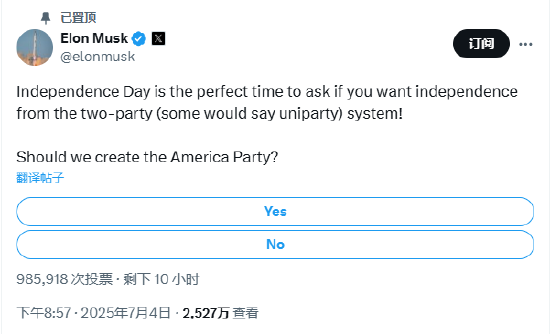 当地时间7月4日,美国总统特朗普签署“大而美”法案成为法律。此前的几个小时,特斯拉CEO埃隆·马斯克在社交媒体发起调查,询问网友美国是否应该成立第三党。