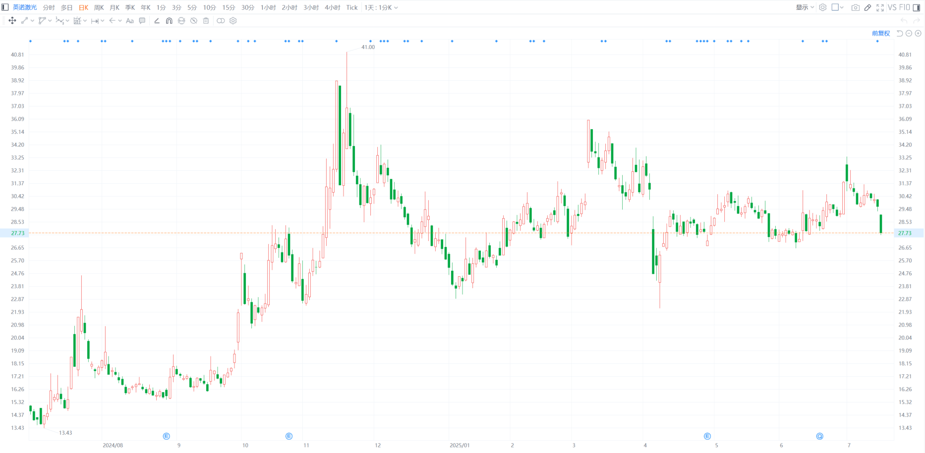 英诺激光(301021.SZ)今日盘中一度跌6.95%至27.59元,股价创6月13日以来逾一个月新低。英诺激光公告称,公司控股股东德泰投资计划在本公告披露之日起15个交易日后的90日内,减持公司股份不超过2,272,000股,不超过公司扣除回购账户后总股本比例1.50%;股东艾泰投资计划减持公司股份不超过1,564,405股,不超过公司扣除回购账户后总股本比例1.03%。(格隆汇)
