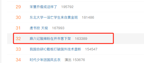 7月25日,#麻六记酸辣粉在开市客下架#登上微博热搜榜单。