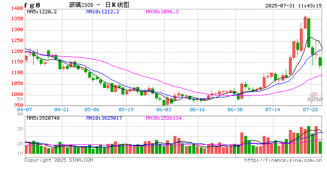 今日商品市场迎来重挫,同花顺(300033)商品指数一度跌超2%,多个品种合约触及跌停,玻璃2509合约就是其中的一员,收盘时跌幅略微收窄至8.22%。