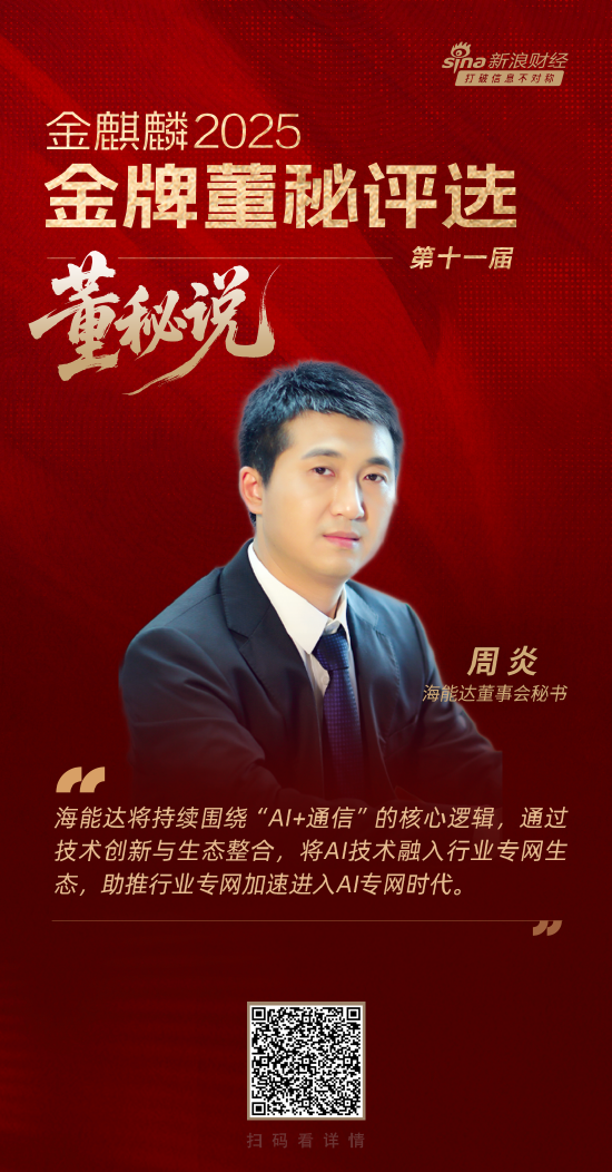 由新浪财经主办的第十一届金麒麟·金牌董秘评选火热进行中!评选期间推出《董秘说》专访活动,助力投资者深入了解上市公司资本价值和发展战略。本期,董秘周炎做客《董秘说》,带你走进海能达>>