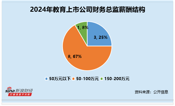 分行业来看,社会服务-教育行业(申万二级行业)上市公司财务总监CFO 2024年薪酬平均数约为71.47万元。其中薪酬最高为昂立教育吉超,2024年薪酬高达152.6万元;薪酬最低为科德教育冯雷,2024年薪酬为26.44万元(统计剔除了未完整领取2024年全年薪酬的财务总监CFO)。从整体薪酬分布来看,薪酬在50-100万元人数最多,共计8人,占比67%。
