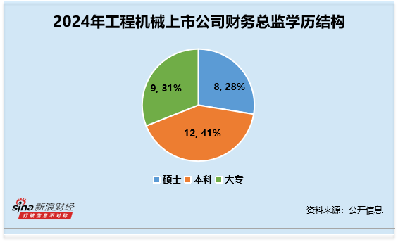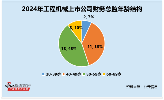 从年龄结构来看,财务总监CFO的年龄平均数约为50.79岁,其中50-59岁最多,人数共13人,占比约45%。其中,年龄最大的为金道科技林捷,年龄为67岁,2024年薪酬为55万元;年龄最小的为万通液压厉建慧,年龄为34岁,2024年薪酬为18.20万元。