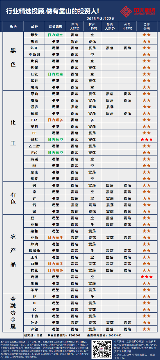 中天策略:8月22日市场分析