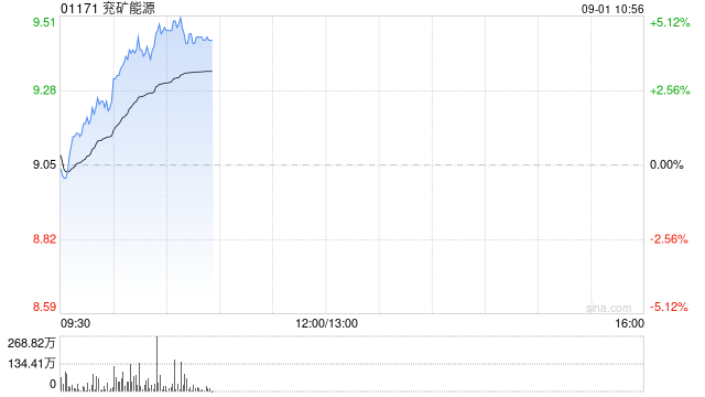 兖矿能源(01171)早盘股价上涨4.53%,现报9.46港元,成交额3.24亿港元。