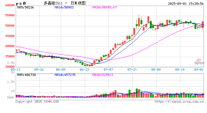 9月1日收盘,国内期货主力合约涨跌互现。多晶硅涨超6%,沪银涨超4%,烧碱、沪金涨超2%;下跌方面,焦煤、焦炭、玻璃均跌超3%,碳酸锂、铁矿石、纯碱跌超2%。