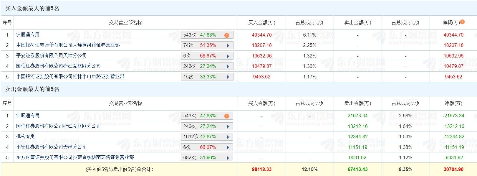 华胜天成(600410.SH)今日跌1.75%,换手率31.8%,成交额80.77亿元。龙虎榜数据显示,沪股通买入4.93亿元,卖出2.17亿元,净买入2.77亿元;一家机构位列卖三席位,卖出1.23亿元;中国银河证券大连黄河路营业部位列买二席位,买入1.82亿元;平安证券天津分公司位列买三席位,买入1.06亿元。上榜席位全天买入9.81亿元,卖出6.74亿元,合计净买入3.07亿元。(格隆汇)