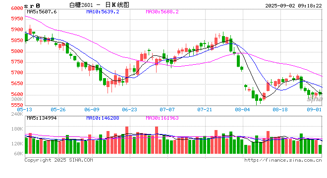 消息方面,8月上半月,巴西中南部地区甘蔗入榨量为4763万吨,较去年同期的4403.4万吨增加359.6万吨,同比增幅8.17%;甘蔗ATR为144.83kg/吨,较去年同期的151.17kg/吨减少6.34kg/吨;制糖比为55%,较去年同期的49.15%增加5.85%;产乙醇21.93亿升,较去年同期的23.14亿升减少1.21亿升,同比降幅5.21%;产糖量为361.5万吨,较去年同期的311.8万吨增加49.7万吨,同比增幅达15.96%。现货报价方面,广西制糖集团报价5860~5970元/吨,个别下调20元/吨;云南制糖集团报价5730~5780元/吨,报价持平;加工糖厂报价区间5970~6450元/吨,部分下调20~50元/吨。原糖方面,巴西中南部双周制糖比55%再次刷新高点。盘面仍缺少方向。国内加工糖价小幅下调,成交中性。期价在5600元/吨附近震荡4个交易日,同样缺少驱动,以震荡思路对待,关注8月各省销售数据及进口数据。