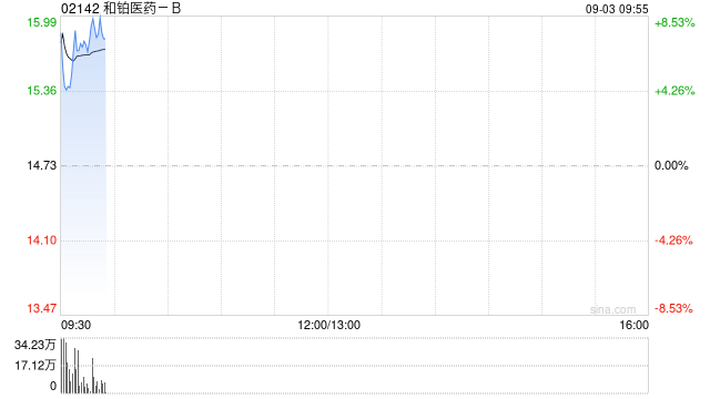 和铂医药-B(02142)早盘高开,股价上涨8.49%,现报15.46港元,成交额4696.23万港元。