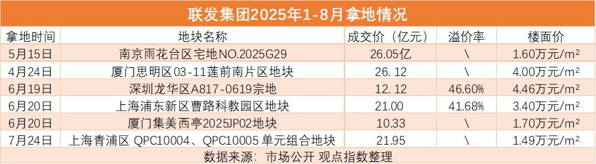 据观点新媒体不完全统计,王文怀上任后,联发集团截至8月拿地金额已达117.57亿元,新增货值221亿元,而去年全年拿地123.4亿元,新增货值超200亿元。