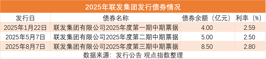 据观点新媒体查阅,进入2025年,联发集团已成功发行三期债券,合计发行金额17.5亿元,其中12.4亿元用于偿还债务融资工具,剩余的5.1亿元全部用于项目建设,包括重庆观音桥、厦门西亭、深圳臻著雅居目、武汉云