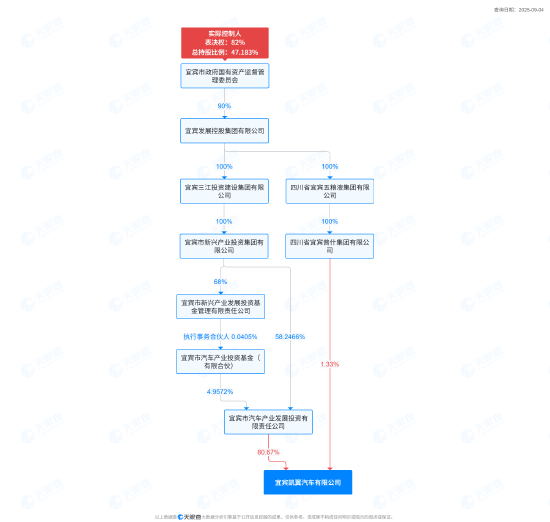 据天眼查显示,五粮液集团通过全资控股的子公司四川省宜宾普什集团有限公司,持有凯翼汽车1.33%股份。