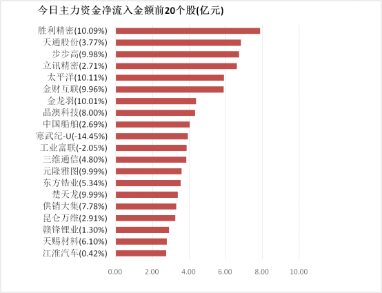 4.胜利精密(002426)主力资金净流入7.87亿元居首