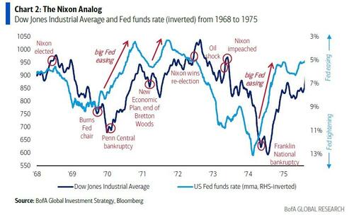 美银Hartnett将当前市场环境类比为1970-1974年尼克松时期,预计美联储将面临巨大政治压力实施宽松政策以创造选前繁荣。他建议投资者做多黄金、债券和小盘股,为即将到来的YCC政策做准备。