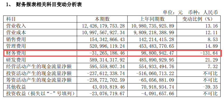 财务费用同比减少131.64% 合同负债同比增幅高达918%