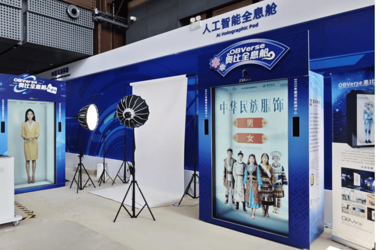 国术科技相关负责人表示,“民族服饰AI换装”是基于“OBVerse奥比全息舱+复刻数字人”技术开发的一款创意新产品。该产品融合了计算机视觉、深度学习及图像生成等前沿人工智能技术,为用户打造沉浸式、个性化的虚拟服饰展示体验,尤其在民族服饰文化传播领域展现出独特价值。