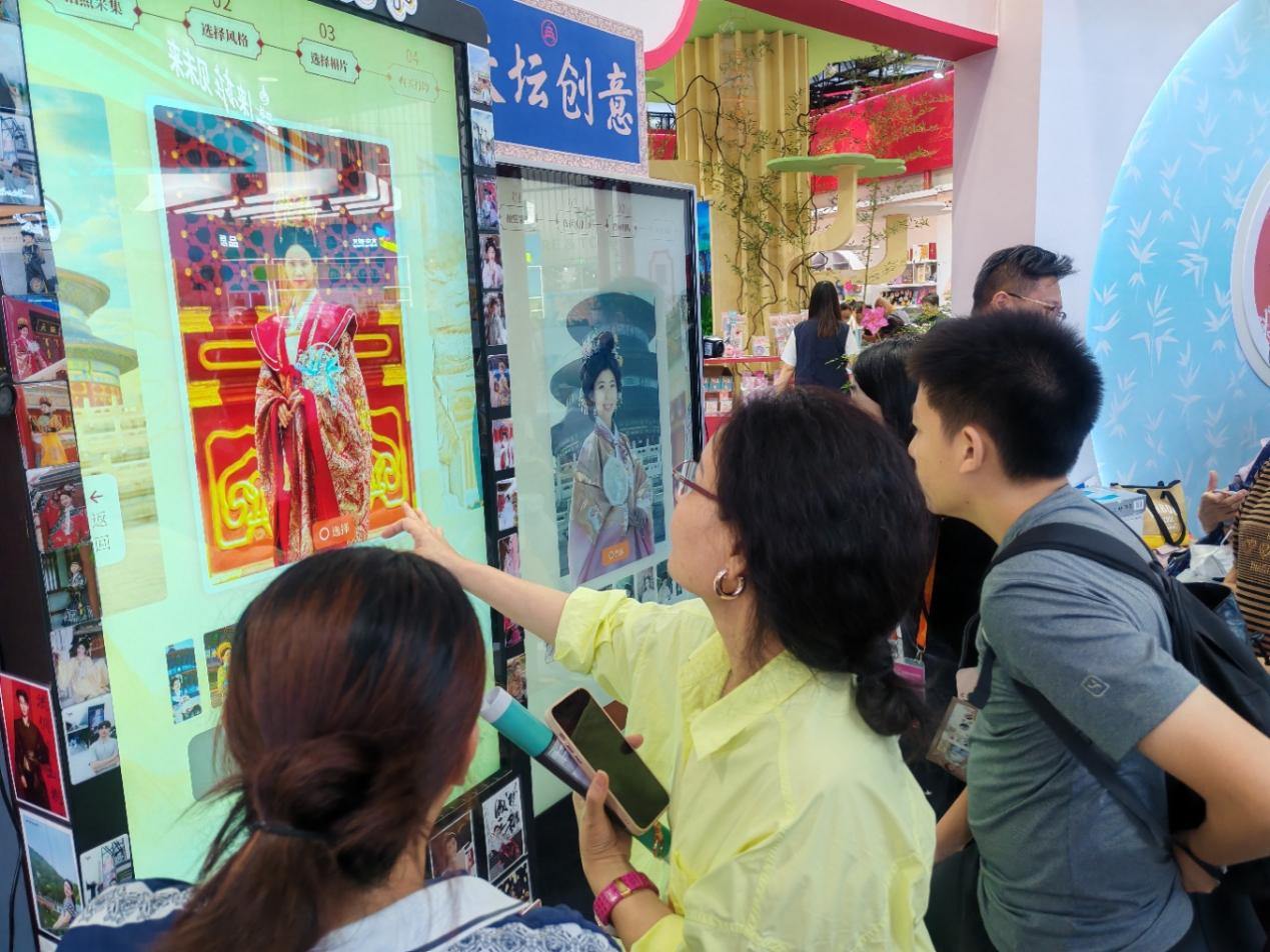 中国经济网北京9月14日讯(记者 杨秀峰) 以往拍摄古装大片,从挑选服装、搭配妆造到布置场景,每个环节都耗时费力费钱,让不少爱好者望而却步。而此次服贸会上展示的“民族服饰AI换装”等技术,借助先进的AI与虚拟现实融合手段,只需简单操作,就能一键选择心仪的古装造型和场景,生成逼真的古装或民族特色服饰大片,让古装拍摄变得轻松。