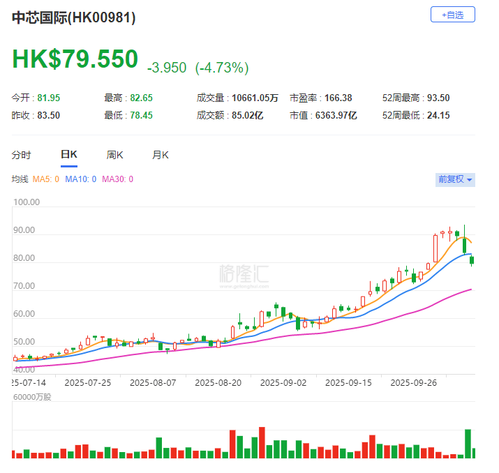 格隆汇10月10日|华泰证券发表研究报告,将中芯国际H股目标价由63港元上调至119港元,A股目标价由118.3元上调至238元,维持“买入”评级。该行维持2025至27年纯利预测,按年分别升26%、22%及27%,达6.2亿、7.6亿及9.6亿美元。该行看好中芯国际在先进制程领域的卡位优势,公司在完成目前的A股增发之后,预计将进入下一个扩产周期,料可充分掌握先进工艺市场增长的发展机会。