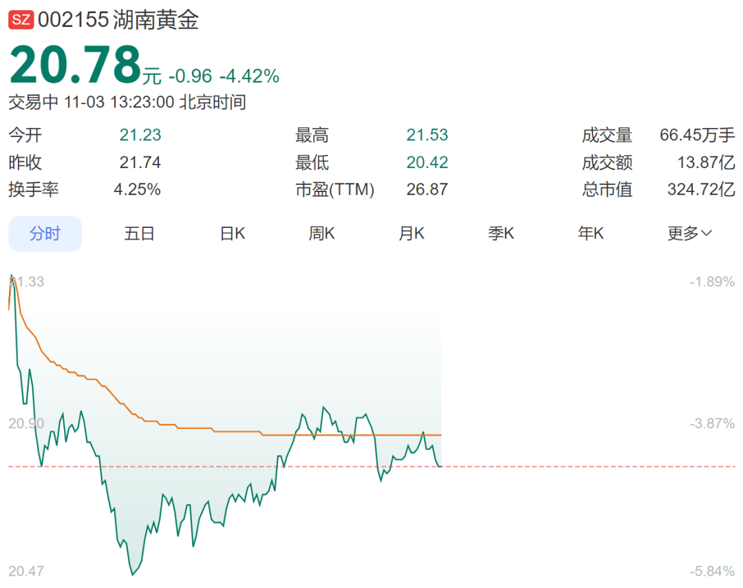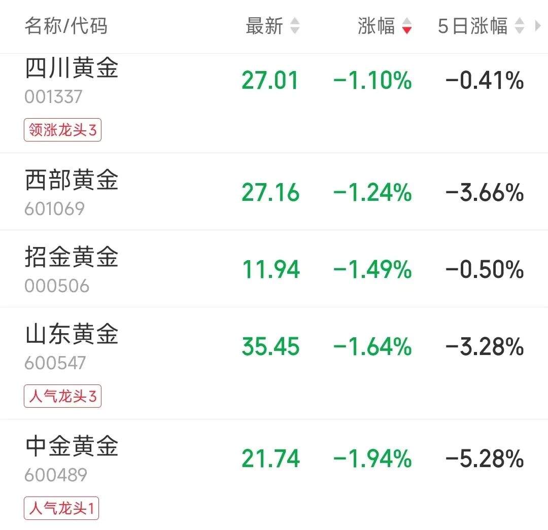 此外,A股方面,贵金属板块领跌。截至发稿,湖南黄金(002155)跌超4%,晓程科技(300139)、山金国际跌超2%、中金黄金(600489)跌1.94%。