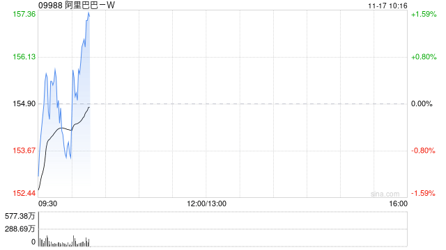 港股阿里巴巴短线拉升,现涨超1%,此前一度跌超1%。