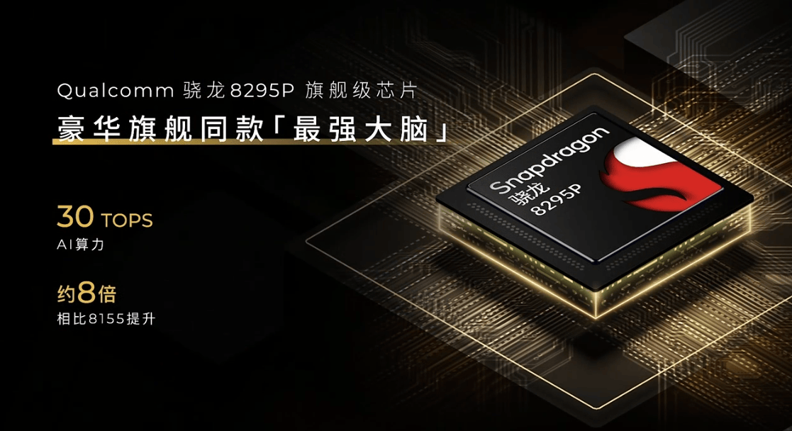 车身尺寸为4430/1880/1520mm,轴距2735mm,配备无边框车门、19英寸轮毂及6处辅助驾驶状态指示灯。内饰搭载8.8英寸液晶仪表与14.6英寸2.5K中控屏,采用高通8295芯片,副驾区域支持魔术扩展岛台配件组合。