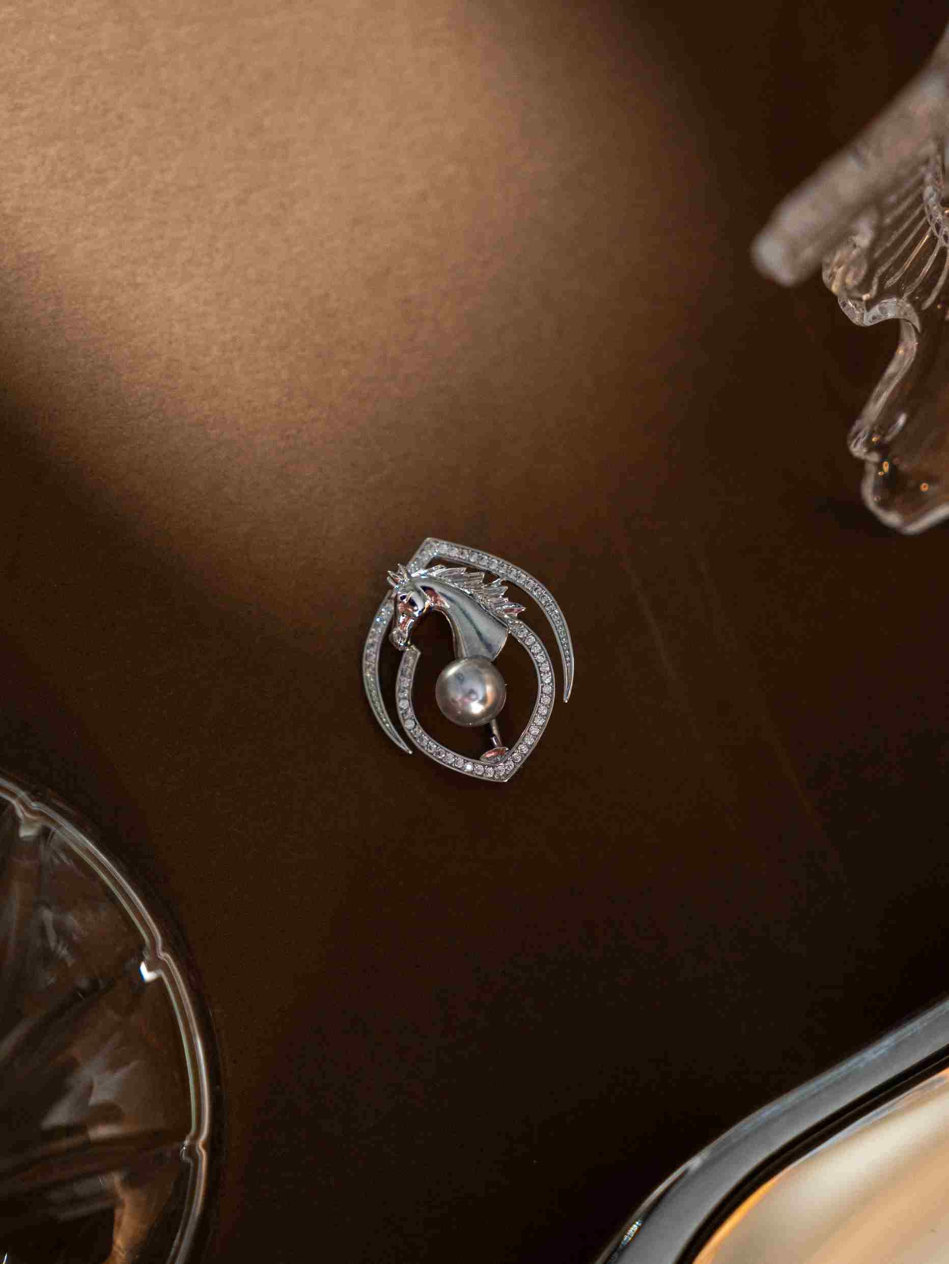 MiNG名皇珠宝将进取之志凝结于“飞骏(马年生肖系列)-以梦为马真多麻胸针”。设计师提取骏马昂首跃起的动态瞬间,用利落的立体金属线条勾勒骏马轮廓,无多余装饰,却让“进取”的姿态跃然眼前。冷调的真多麻珍珠嵌于骏马与满钻围边的衔接处,平衡整体造型,珠光泛着银蓝晕彩,与周边的银光材质形成细腻碰撞,既有金属的力量感,又有珍珠的温润感。新年别在大衣翻领上,是对“以梦为马”的自我期许;日常搭配针织衫,又成低调的品位点缀。不仅是“新年限定”,更是能陪伴一整年的精神徽章。
