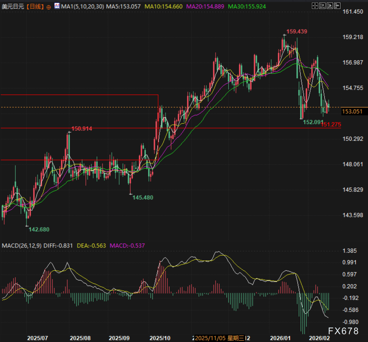 技术面154.37附近是重要的压力位,也是前期箱体的上轨,如果美元兑日元汇价无法涨过此水平,日元则有继续升值的潜力。