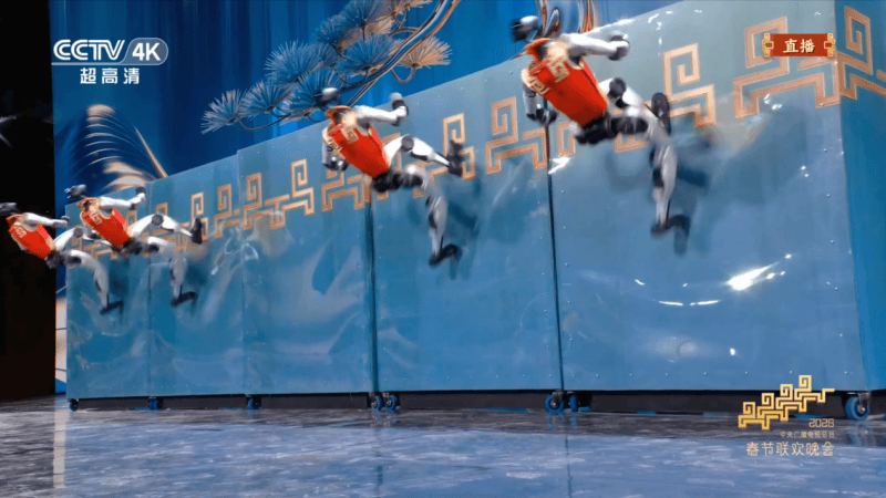 “近距离看,它可以跳到天花板那么高。”宇树科技创始人王兴兴向央视新闻透露,为了这个动作的呈现,团队在仿真平台进行了上亿次训练,然后再放到实物机器人上进行微调。“这一动作对机器人的平衡控制、动态响应和落地稳定性提出了极高要求,在全球范围内是首创。”