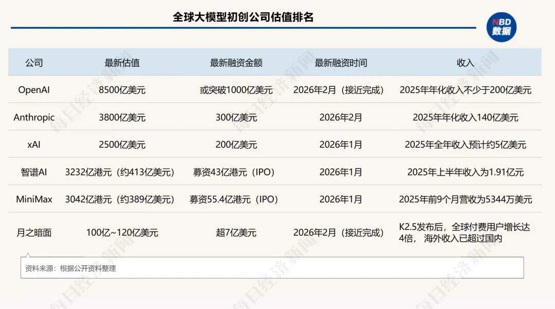 值得注意的是,这两家公司登陆港交所的时间并不长。智谱于2026年1月8日上市,发行价116.20港元/股;MiniMax紧随其后,于1月9日上市,发行价165港元/股。在短短一个多月的时间里,智谱的累计涨幅已达523%,而MiniMax的累计涨幅也达到487.88%。